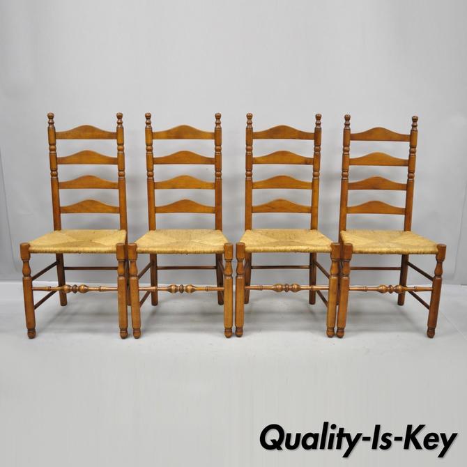 Set of 4 rush bottom vintage ladder back dining chairs farmhouse can ship.
